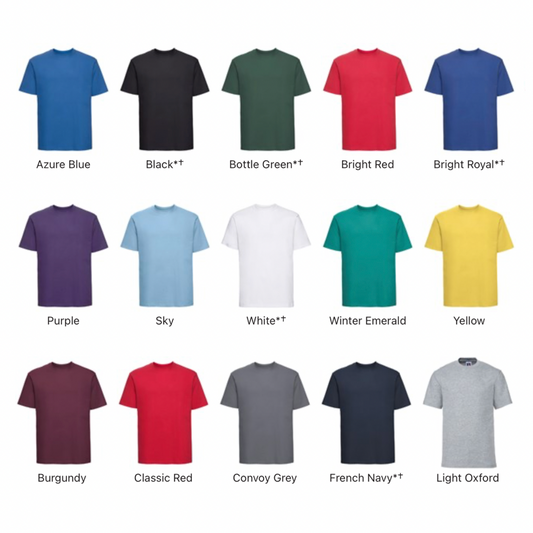HOT DEALS | 6 RUSSELL SUPER RINGSPUN CLASSIC T-SHIRT | PLUS LOGO TO LEFT BREAST £52